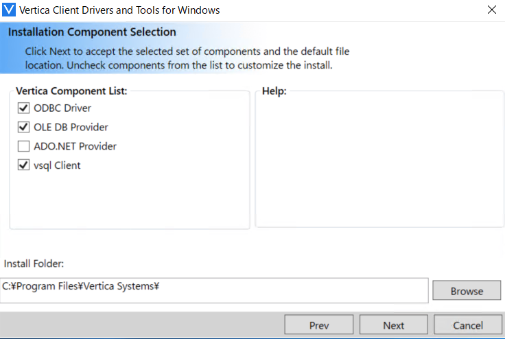 ・各プラットフォーム:vsqlクライアント、ODBCドライバなどのコンポーネント