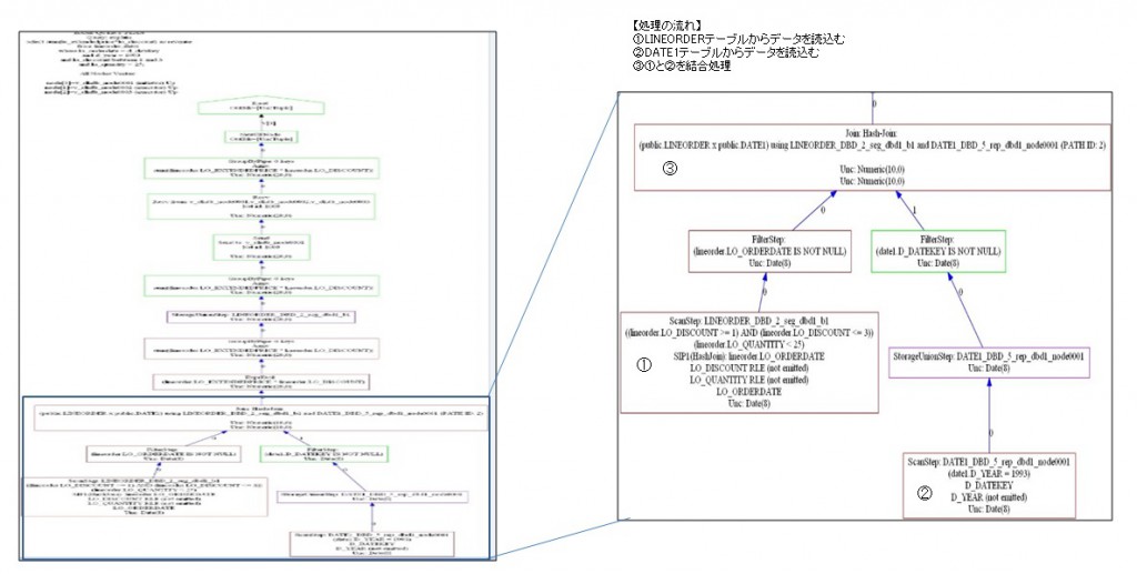 dbadmin=> \o※SQLはlineorder表とdate1表を検索して結合する処理です。