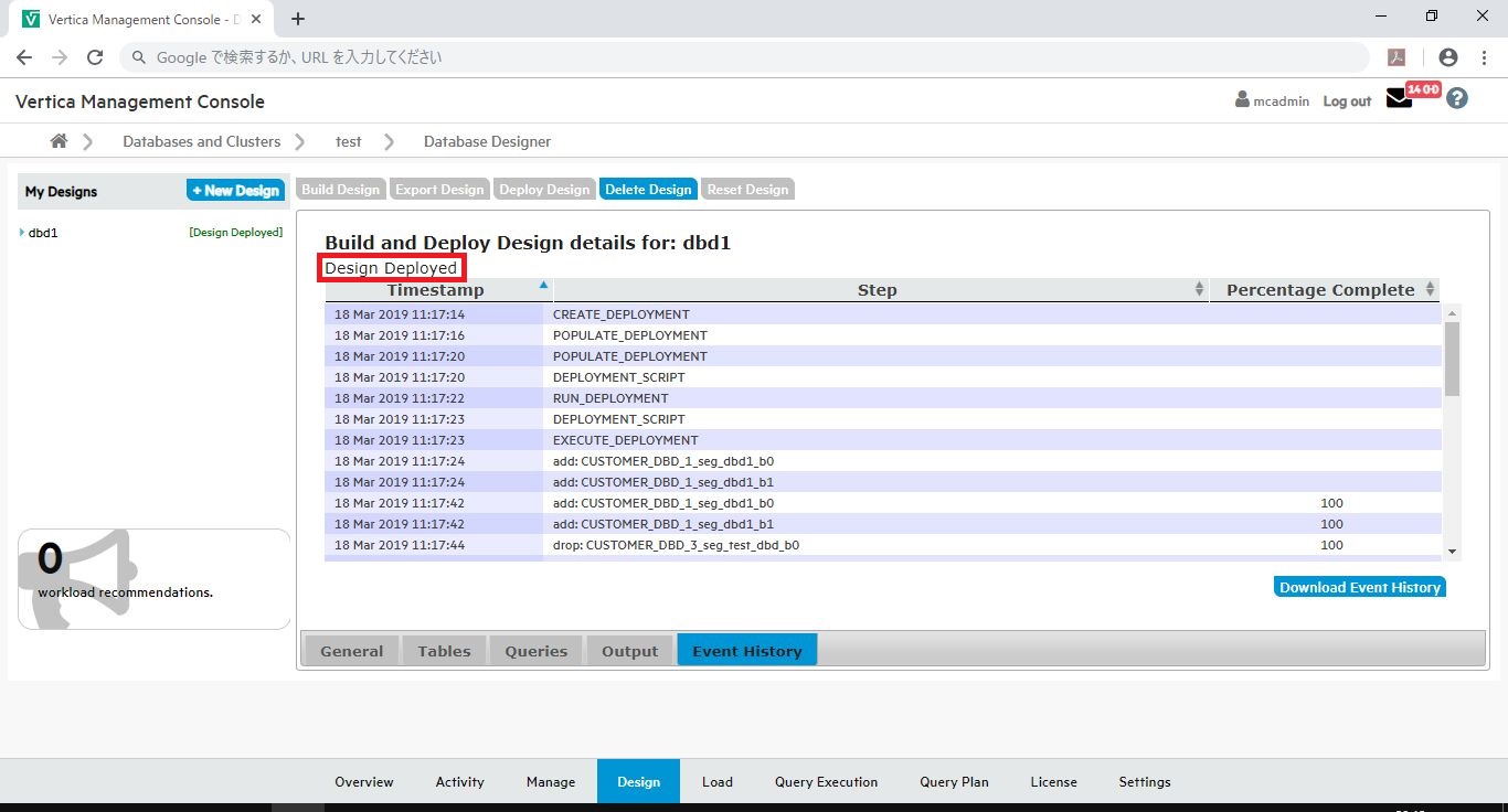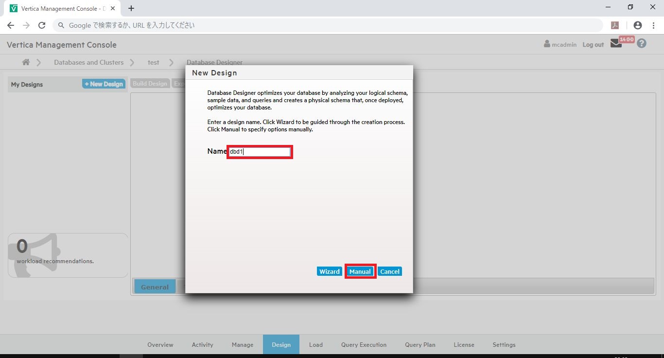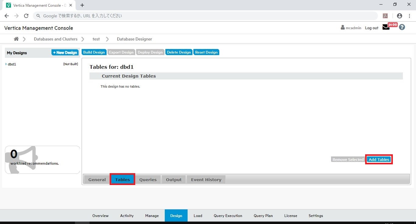 Management Consoleのデータベースデザイナを使用してテーブル単位でプロジェクションを最適化する手順