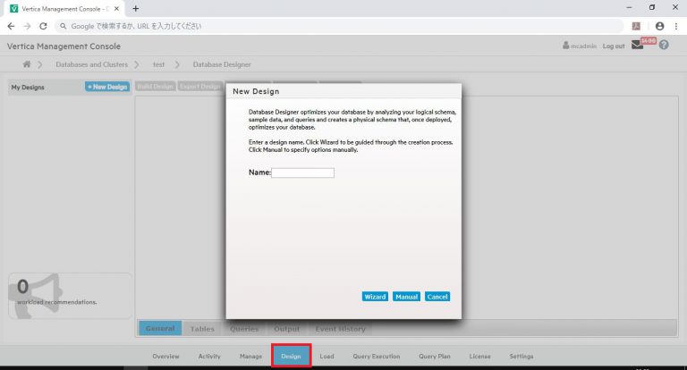 特定のテーブルに対してプロジェクションの最適化を行うには「Management Console」からデータベースデザイナを使用する必要があります。