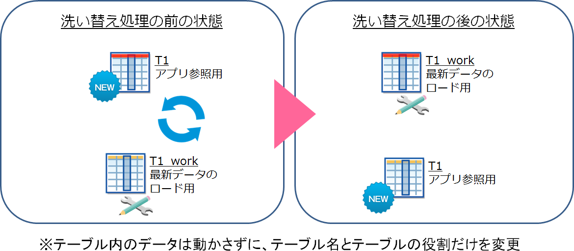 例えば、データベースサーバでバッチ処理を行う際にテーブルの洗い替えを行うケースがありますが、