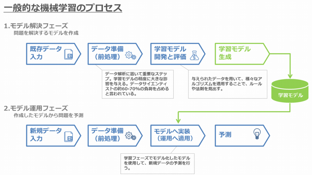 一般的には、機械学習は以下のようなプロセスを踏まえて実行されています。