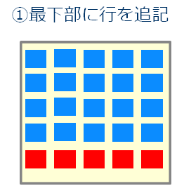 1) 対象テーブルに対してINSERT文を発行すると最下部に行が追記されます。