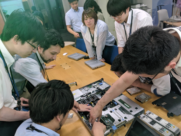 初めてハードウェア勉強会を実施しましたが、若手はもちろんのこと、中堅クラスのメンバーもあまり見ることが無いサーバー筐体内部について興味津々でした。今年入社の新人メンバーは、特に触れたことが無い未知の領域のため、おっかなびっくりしながらCPUやメモリ、HDDに触れていました。