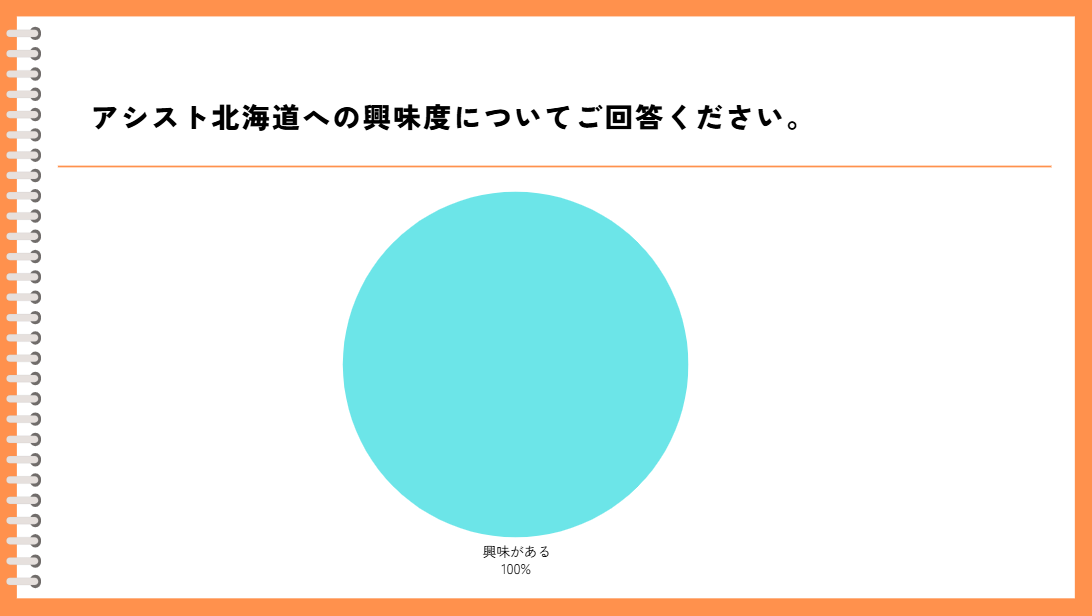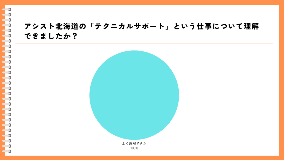 特に「仕事体験」に関しては、多くの学生が満足しており加えてアシスト北海道への関心が高まったことを大変嬉しく思います!