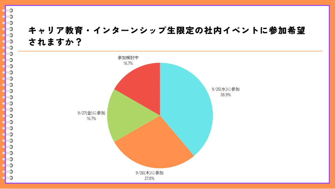 インターンシップ終了後、参加した学生のみなさん(18名)へアンケートを実施しました。