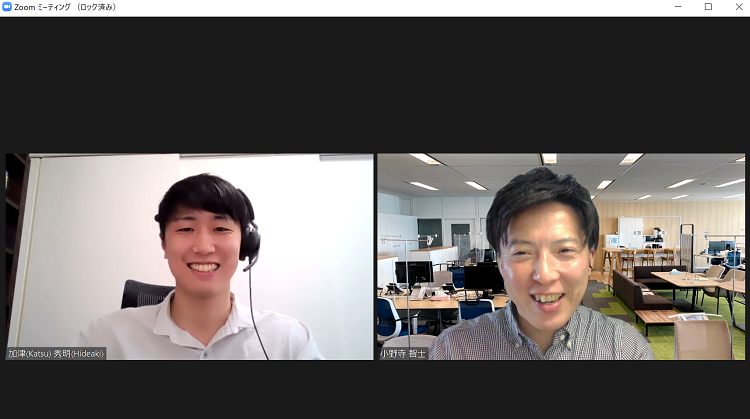 小野寺がインターンシップで出会ったときからこのようなイメージを持っている加津さんに、入社に至る経緯や、学生時代に熱中したこと、仕事への向き合い方などを聞いてみました。