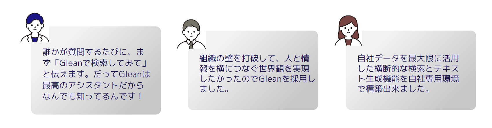 もちろん日本のユーザも同様です。「Gleanがなくなったら仕事にならない」「Gleanは私にとって最高のAIアシスタントです」など、一度Gleanを使いだしたユーザからは次々とこのような声が聞こえてきます。