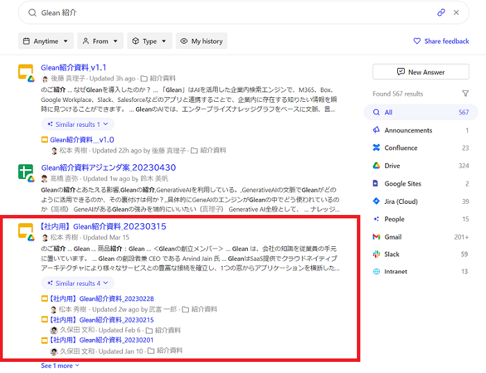 このように、Gleanの「Similar Results」機能は、ユーザーに対して効率的かつ効果的な情報検索体験を提供し、業務の生産性を向上させるための強力なツールです。ぜひ活用してみてください。
