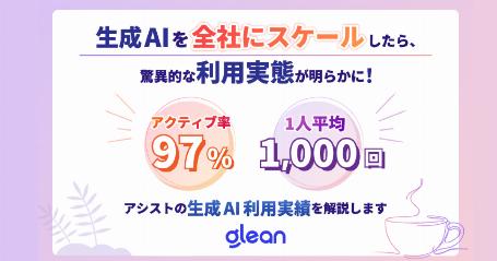 アシストでは生成AIの「Glean」を全社スケールで導入しています。2024年春夏の利用実績を分析したところ、驚きの結果が明らかになりました。利用回数や効果、社員へのインタビューをご紹介します。