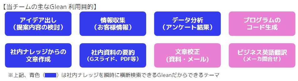 チームメンバーのGlean活用スキルも向上しており、生成AIの回答に不明瞭な点があればさらに深堀りする質問を繰り返して、求める回答の精度向上も心がけています。