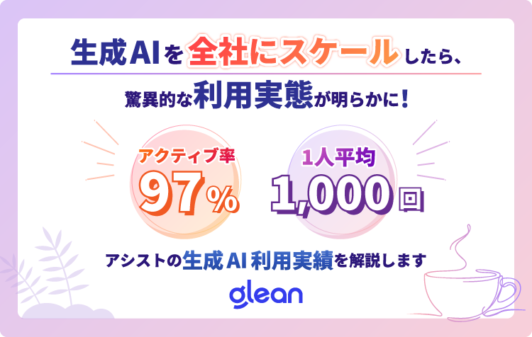 アシストが導入している生成AIは「Glean(グリーン) 」になりますので、Gleanの利用ログデータをもとに紐解いていくことにします。
