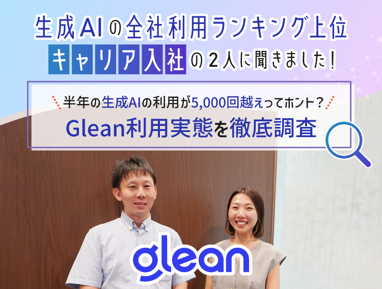 全社員を対象にした利用実績のなかで、群を抜いて利用が高かったユーザーセグメントにインタビューする企画の第二弾! 第一弾は生成AIネイティブの新入社員さんたちでしたが、第二弾は「中途入社」「サポートセンター」「Glean利用頻度がダントツ」の共通項を持つおふたりへのインタビューです。