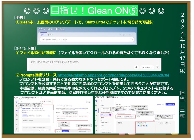 本日午前中のアポイントでも、Gleanの話をしました。勿論、生成AIのキーワードはどのお客様でも出てくるというのもあり、話題に事欠きません。以前の新入社員さん向けインタビュー、中途社員さん向けインタビューの記事も商談で活用しています。