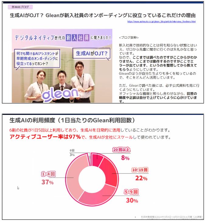 ── 新入社員さん向け、中途社員さん向けのインタビューでは、「新入社員の方はGleanを利用するのが当たり前」「中途社員さんも業務をする前提になっている」というコメントがありました。皆さん、Gleanの導入前後での変化を実感されていますか?