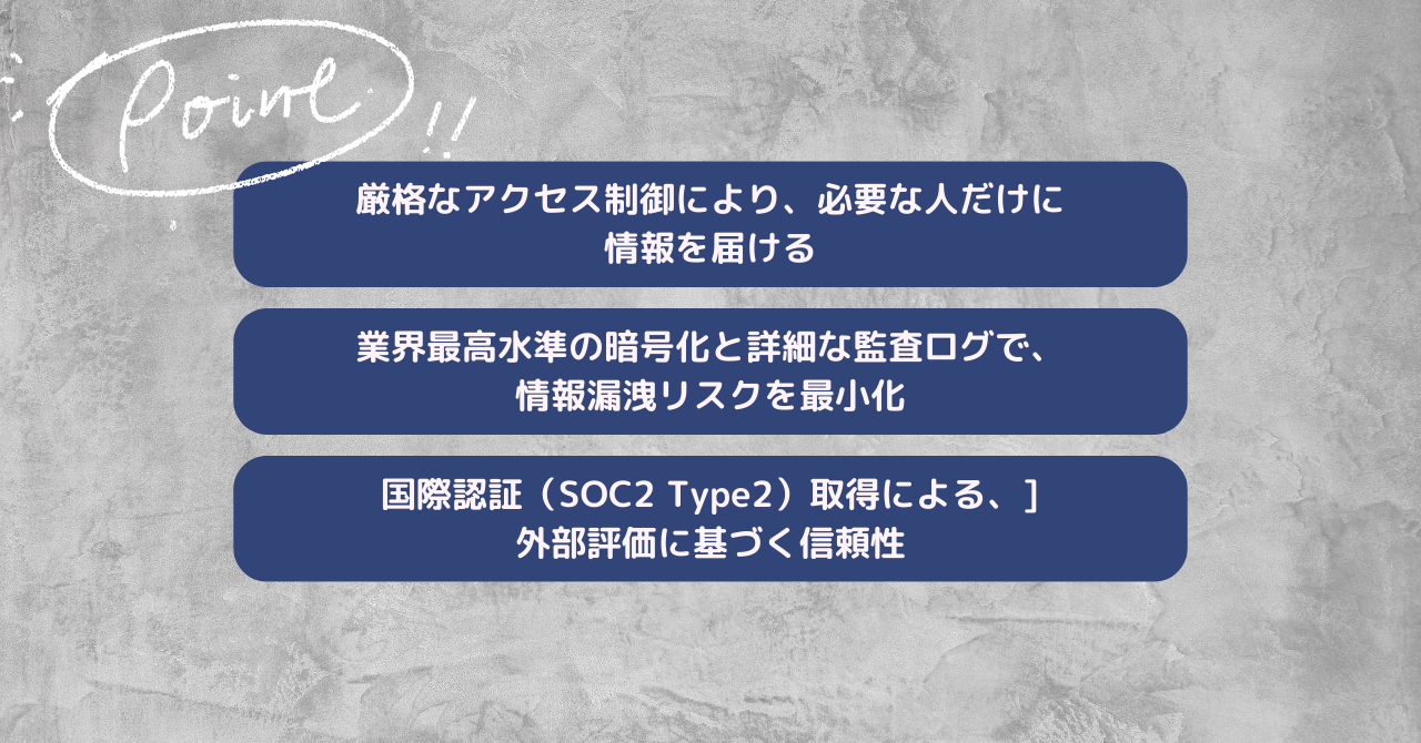 厳格なアクセス制御により、必要な人だけに情報を届ける
