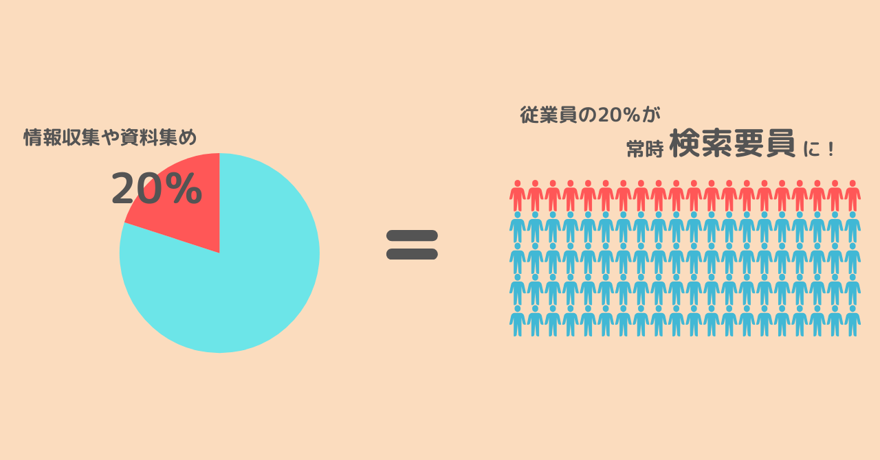 一説によると驚くべきことに、ビジネスパーソンの多くは一日の労働時間の約20%を情報検索や資料集めに費やしていると言われています。8時間勤務の場合、1時間36分が「探す」ことだけに使われているのです。