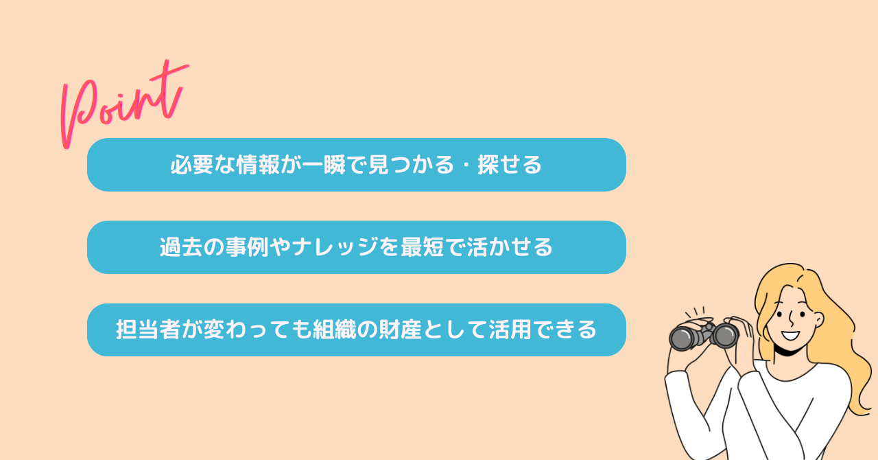これらはすべて「必要な情報がすぐに見つからない」という一見些細な問題から派生しているのです。