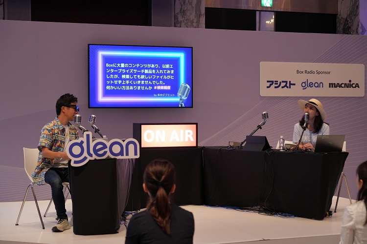アシストからは、こちらの2名「Takejo Aki」「DJ Koo Yagi」がこのステージでデビューを果たしまして、お客様のお悩み相談をGleanでどう解決していくのか!?という内容で番組を進めていきました。