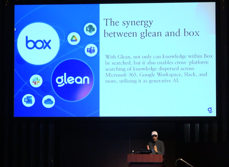 Boxだけでなく、Microsoft 365やSlackなど企業内に散在するナレッジを、Gleanを活用することで横断的に検索が可能となり、生成AI活用も促進可能であることが強調されました。
