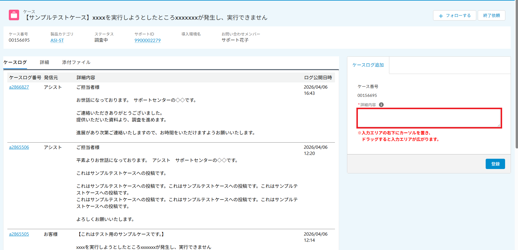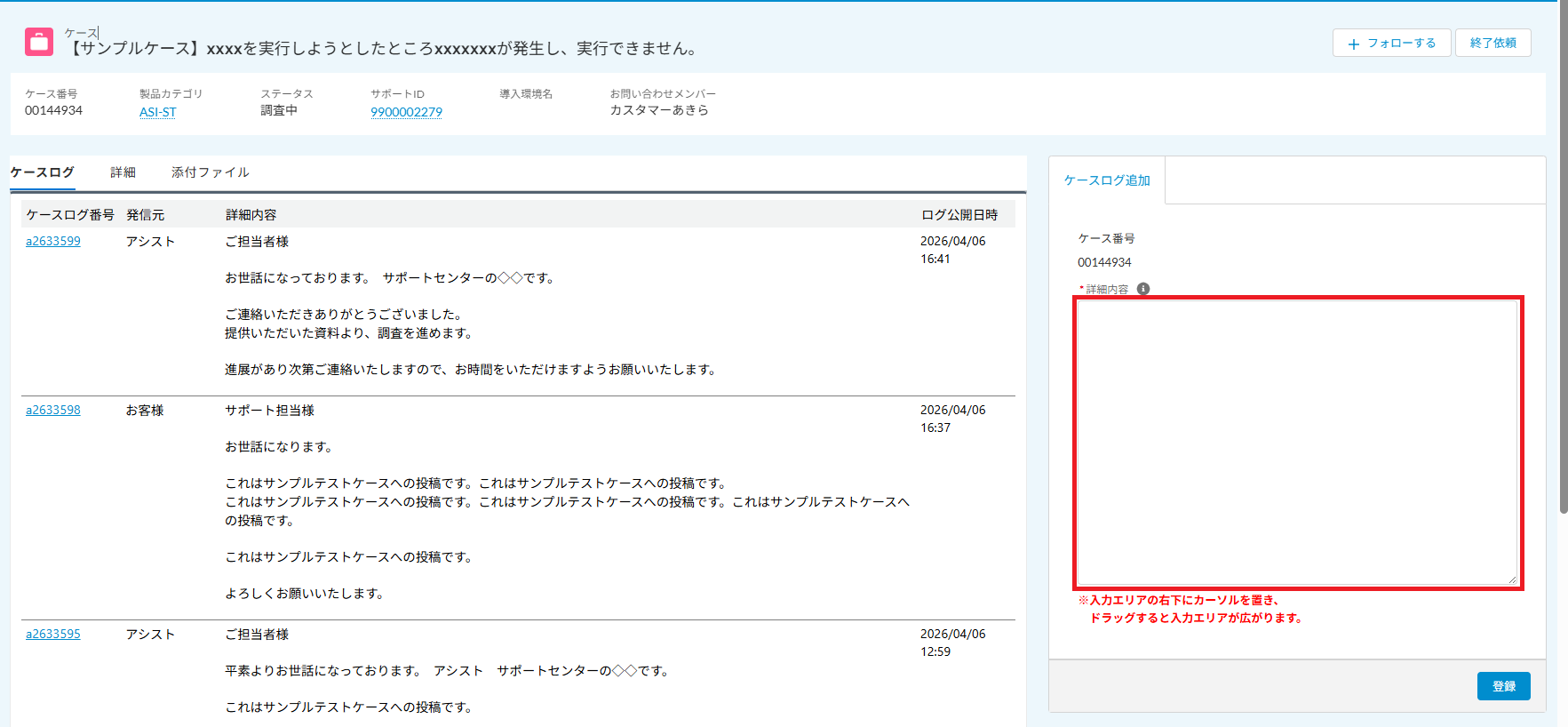 - 問い合わせに対して追加で連絡を記入する「詳細内容」欄が狭いので大きくしてほしい。また最初から記入欄のサイズを大きく表示してほしい