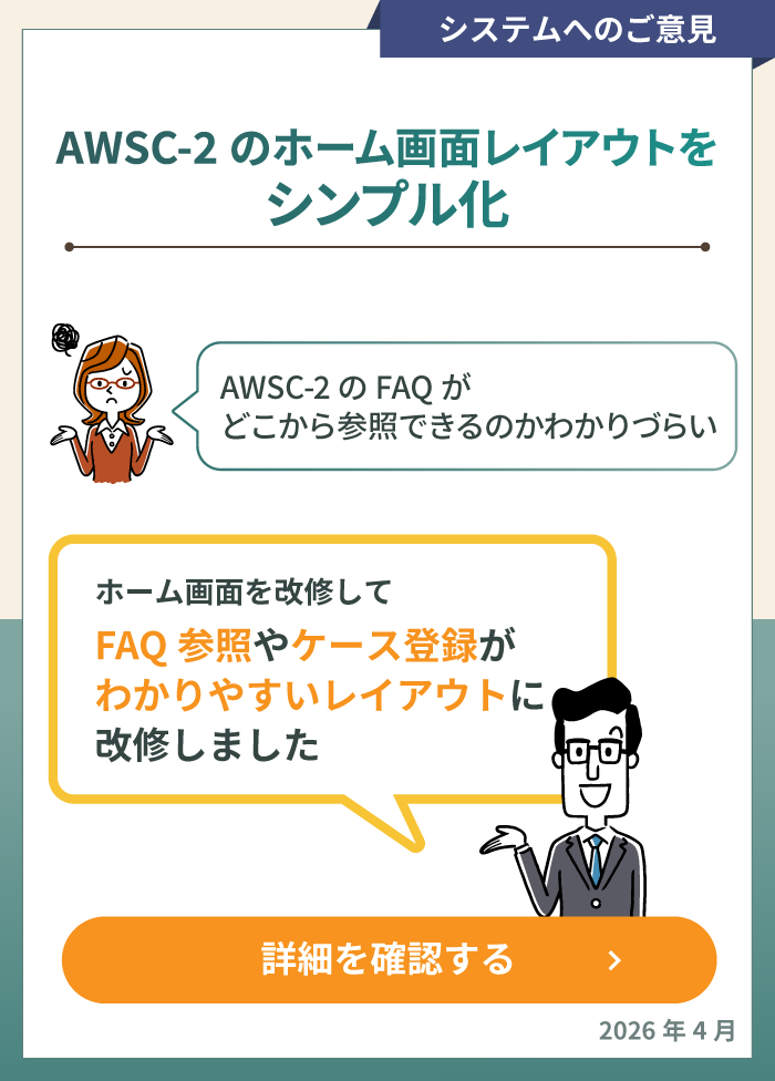 アシストサポートセンターでは、WebサポートシステムであるAshisuto Web Support Center-2(以下、AWSC-2)を用い、お客様から頂戴するお問い合わせへの対応を行っています。