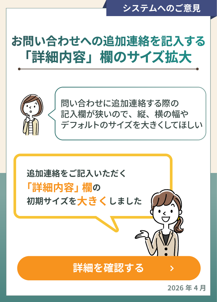 皆様からお寄せいただいた貴重なご意見は、担当者が一つひとつ大切に拝読しております。