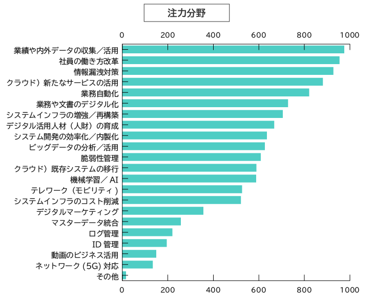 コロナ禍によりテレワーク系の話題が多いのではと予想していましたが、DXやデータサイエンス、AIや自動化、品質・性能改善など多岐にわたる課題への対応がIT部門に求められているようです。