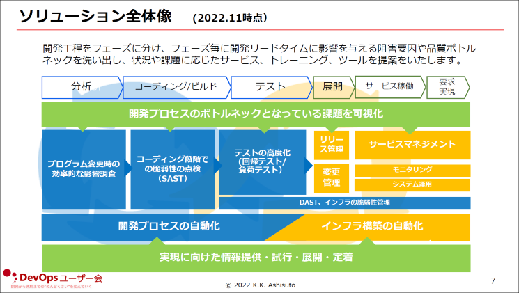 開発、運用の両方の工程において、ワークショップを使った課題整理、ツールやサービスを通してお客様の課題を解決を目指す。