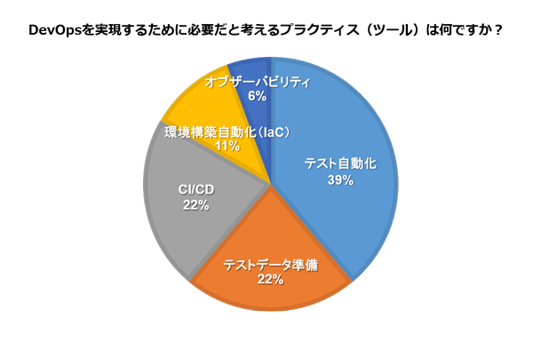 ご参加いただいたお客様に、DevOpsを実現するためのプラクティス(ツール)についてお聞きしました。「テスト自動化」「テストデータ準備」を必要と考える方が多いことが分かりました。
