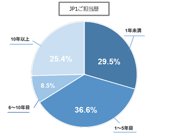 全体の66%がJP1ジョブ管理ご担当歴5年目以下のビギナー