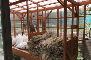 我が家の菜園に先月、藁を入れる小屋を作りました。藁は近くの田んぼからもらってきて、鶏小屋に敷きつめています。小屋の掃除をする時に鶏糞の付いた藁を畑にそのまま放置し、堆肥にすることで栄養のある良質の土ができるのです。