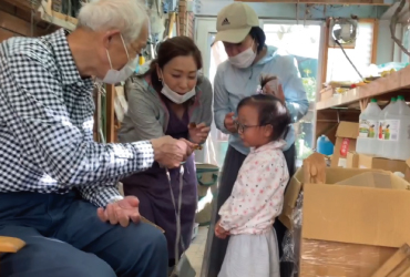 それでも、もう一つ残った巣箱にはぎっしりと蜜が詰まっていて、志賀さんによれば、10キロ近いハチミツが採れるだろうとのことでした。この日は社員の家族も採蜜の見学に来ていました。