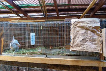 食用ウサギを飼い始めて5年ほどになりますが、産まれた子ウサギが病弱で途中で死んでしまったことが何度かありました。原因の一つは近親交配だと聞いたのでウサギの専門家である香川大学の川崎先生に対策を伺おうと思っていたところ、川崎先生から食用ウサギを飼育している多田さんを紹介いただきました。多田さんは大阪の四条畷で食用ウサギを飼育して、ウサギ肉をレストランに卸しています。近親交配について相談すると多田さんのウサギと交換してもらえることになり、昨年11月末にオス1羽とメス2羽と一緒にうちのウサギを見に来てくれて、近親ではないウサギ同士をペアで選んでケージに入れてくれました。
