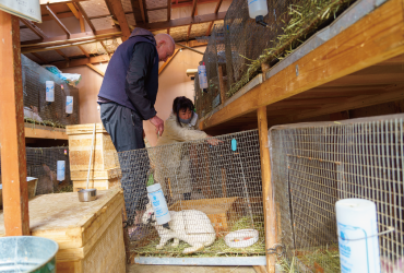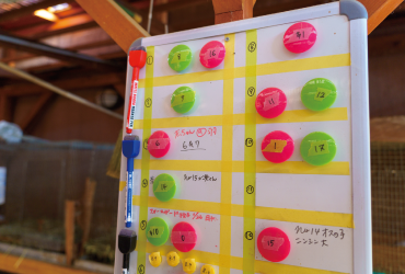京都に住む動物好きなアシストの元社員が、退職後もアルバイトとしてウサギの世話に通ってきてくれています。仕事で京都を留守にすることの多い中でウサギや鶏の飼育ができるのも彼女たちアルバイトのおかげです。子ウサギが産まれた時は、特に注意事項などを連絡帳に書いたりして見事なチームワークで世話をしてくれています。