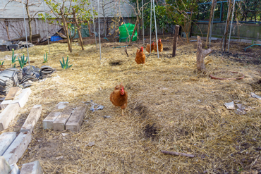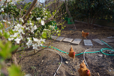 卵を産まなくなった鶏が5羽、自由に庭を闊歩しています。柔らかい土にはすぐに草が生い茂ってくるでしょう。山羊は1頭だと寂しくて鳴いたり脱走したりする危険性があるというので、2頭レンタルする予定です。まずは何と言って家人を説得するかが問題なのですが、ミニ山羊は人懐こくてすごく可愛いいらしいので来てしまえば大丈夫ではないかと目論んでいます。