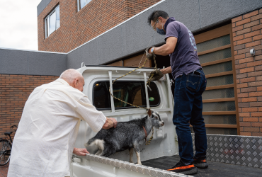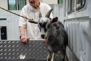 4日目になって、前日まで元気だったヤギが体調を崩しました。下痢をしてあまり動かず、なきません。往診してくれる獣医を探していると、胃の中に虫がいるのかもしれないとのことで念のためイベルメクチンを投与しました。翌日獣医さんに診察してもらったところ、一番の原因は環境が変わって寂しかったこと。そのヤギはまだ1歳前で、植平さんが生まれたときから哺乳瓶で育てたのだそうで、ホームシックだったのかもしれません。獣医さんの治療ですっかり良くなって、今は元気いっぱいです。