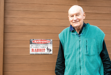 先日友人が面白いものをくれたので早速玄関に貼りました。人間に危害を及ぼす恐れのある犬が中にいることを警告するために入口に「猛犬注意」といった文言を掲げている家がありますが、それをもじって「警告:この家はよく訓練されたウサギによって守られています。怪我や死んでも責任は負いません」という看板です。