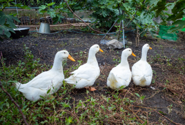 京都は一気に秋めいてきました。ヤギがいなくなって寂しくなった代わりに、庭を闊歩して目を楽しませてくれるのが大きくなったアヒルたちです。アヒル用の小さなプールの水をきれいにすると、すぐにヨチヨチ寄ってきて水遊びをしますが、水が汚れていると入らないほどのきれい好きです。