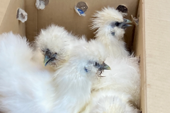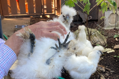 6月に綾部を訪問した時に、烏骨鶏を飼いたいので探しているという話をしたところ、志賀さんが烏骨鶏を卵から孵化してくださいました。