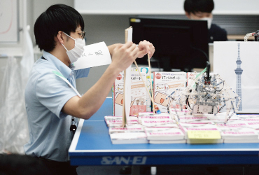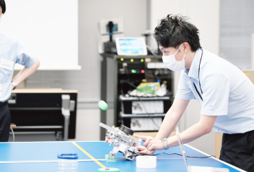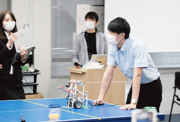 ベースエリアからロボットにピンポン玉を投げさせ、合計得点を競います。