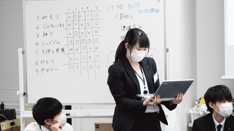 また、目的をもったチーム作業を通じて各自がもつ役割の意味を感じてもらったり、チームパフォーマンスを発揮するにはどうしたらいいかを実際に体験してもらうことや、チーム内で報告をしたりされたりすることで、報告というものの意味を考えてもらうことなど、これから配属されたときにチームの一員として活躍するためにはどうしたら良いかを実践を通じて考えてもらう内容も学習目標としています。