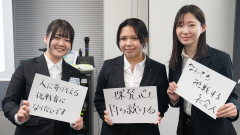 長田さん(人事部 部長)「これから皆さんは、色んな立場の人と仕事をします。その時に、新人だから、若手だからと遠慮はしないでほしいです。仕事は成果を出すためにしているので、『そのためにはこうすべきだ』と思ったことは、自信をもって遠慮なく伝えるようにしてください。ただ、仕事をする相手は“人間”だから、作法や配慮、気遣いは大事です。配慮はしても遠慮はするな。これだけは覚えておいてください。」