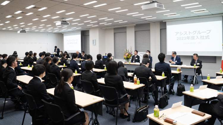 2023年4月3日、アシストグループは新たに41名(アシスト35名、アシスト北海道6名)の仲間を迎えました。昨年同様に対面での開催でしたが、感染症対策のため代表者のみとなっていた辞令授与が、今年は一人一人に手渡しできるようになりました!