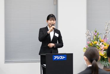 休憩を挟んで、新人代表の挨拶は山下瑛人さんからいただきました。三次面接の最後に、「アシストに一目惚れしています!」と、熱い思いをぶつけてくれたそうです!