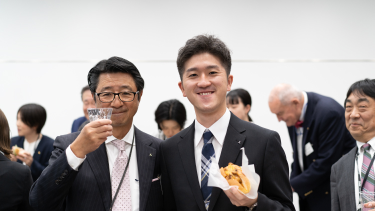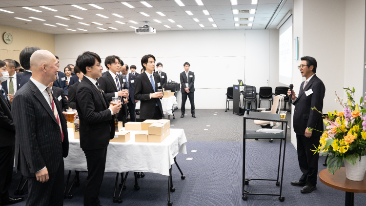 今年は数年ぶりにウェルカムパーティーも開催できました!乾杯の発声は大塚さんからです。