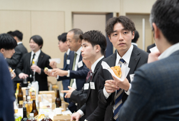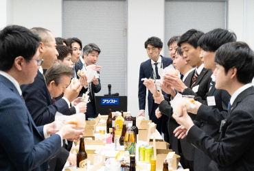 役員や人事メンバーだけでなく、先輩社員も集結して新入社員をおもてなしします。コロナ禍ということもあり、皆さん入社式までに同期と集まることが難しかったそうですが、少し打ち解けたようでした。