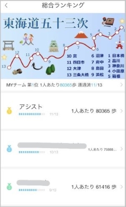 「〇〇体力科学研究所」という、チーム名からして本気そうな団体も参加する中、なんとレース期間終了日を待たずに、チーム「アシスト」が1位でゴールしました!