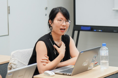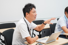 まずは、アシストの事業説明と企業理念『哲学と信念』についてご紹介しました。その後、早速生徒さんからのQ&Aに答えていきます。今回対応してくれた社員は以下の3名です。