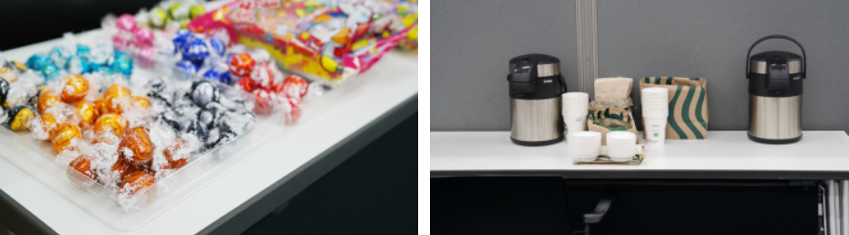 ボランティア部からは、感謝の気持ちを込めてスターバックスのコーヒーとお菓子をご用意。さらに、日本赤十字社の方からもお礼の品をいただき、参加者の皆様は休憩スペースで一息ついた後、袋いっぱいのお土産を手に、それぞれの職場へと戻っていかれました。ささやかながら、感謝の気持ちをお伝えできるひとときとなりました。